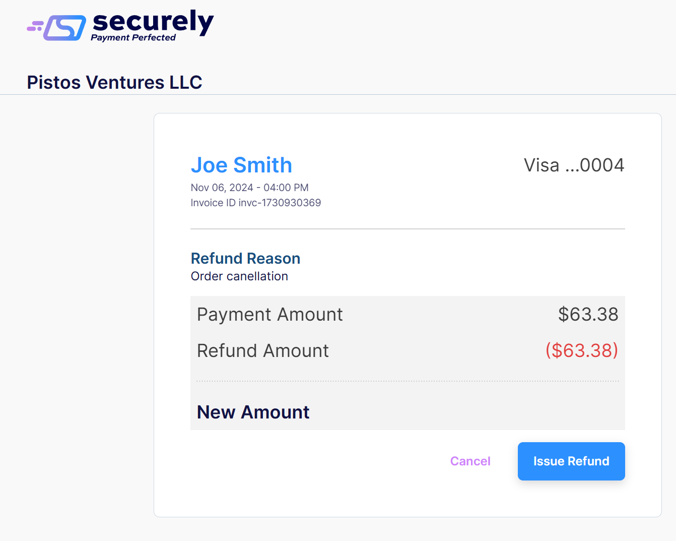 A refund flow will generate a url that can be used to direct a customer to confirm a refund. The payload should consist of the meta data that was used to create the original payment.
